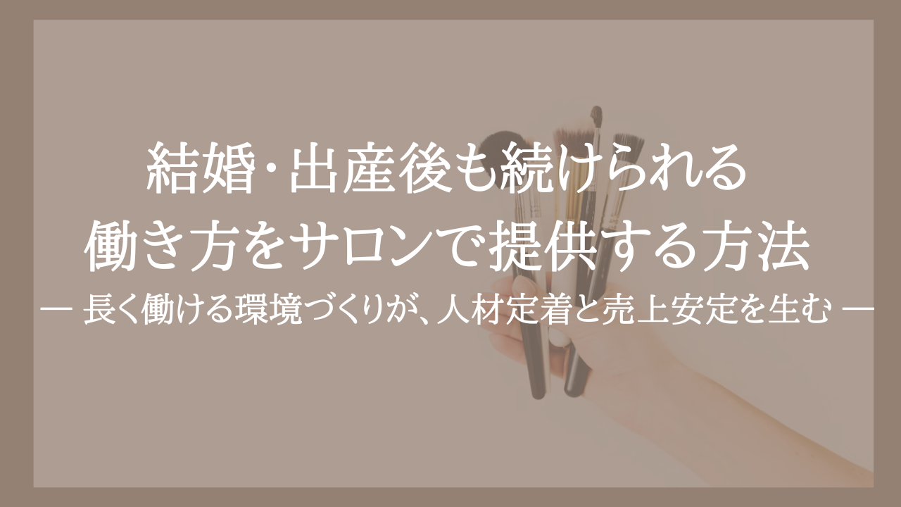 結婚・出産後も続けられる働き方をサロンで提供する方法 ― 長く働ける環境づくりが、人材定着と売上安定を生む ―