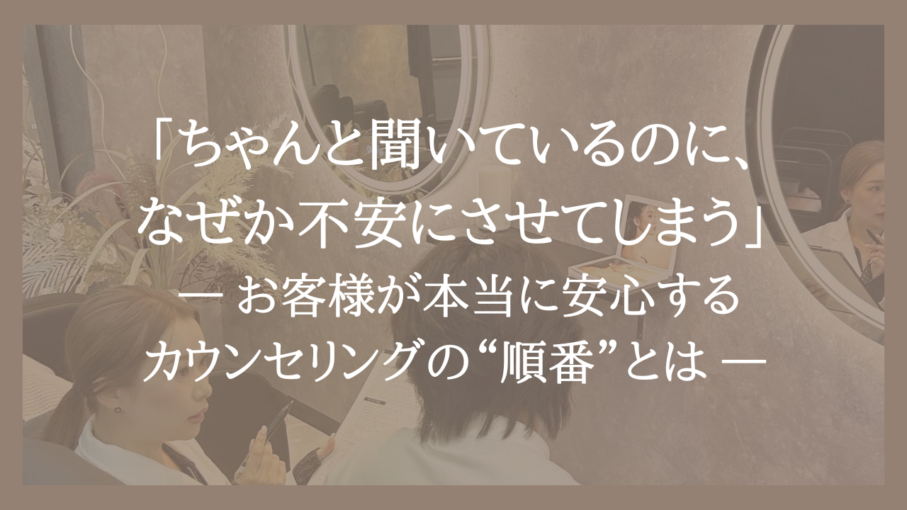 「ちゃんと聞いているのに、なぜか不安にさせてしまう」 ― お客様が本当に安心するカウンセリングの“順番”とは ―